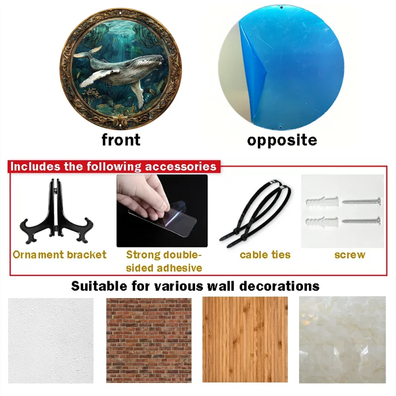 Packaging Includes:1xMetal Sign,Screws,tape,strong doublesided adhesive, decorative bracket, OPP bag. Suitable for various decorative scenarios.