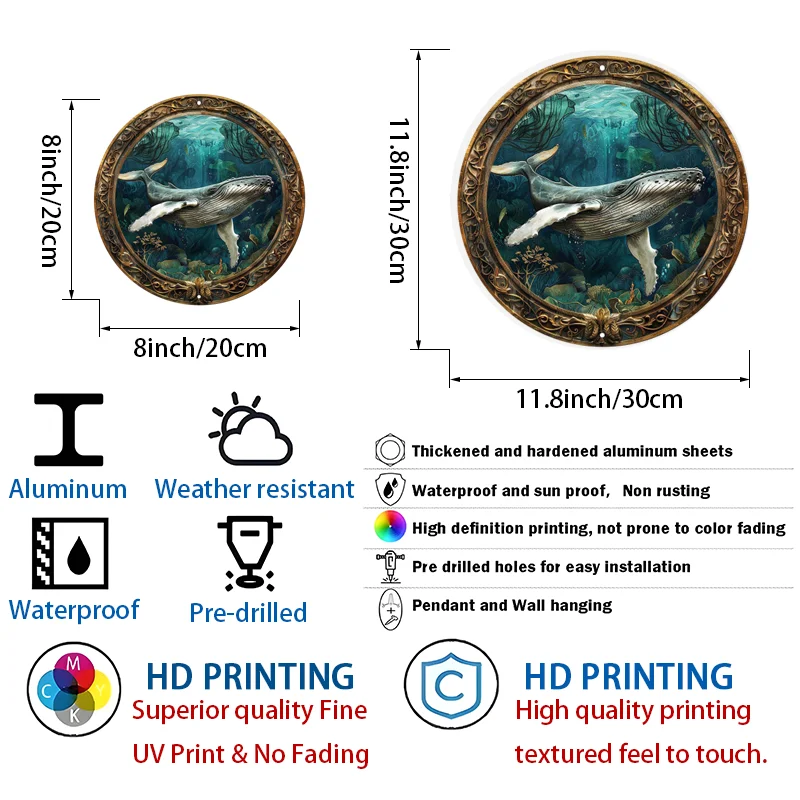 Aluminum Wall Sign for Outdoor and Indoor, Funny and Scratch Resistant Metal Decor, Wall Art, Home Decor, Humpback Whale